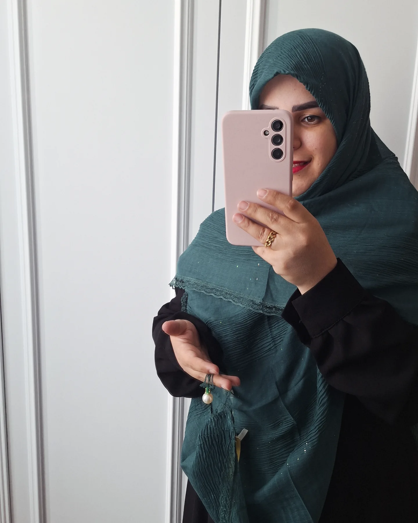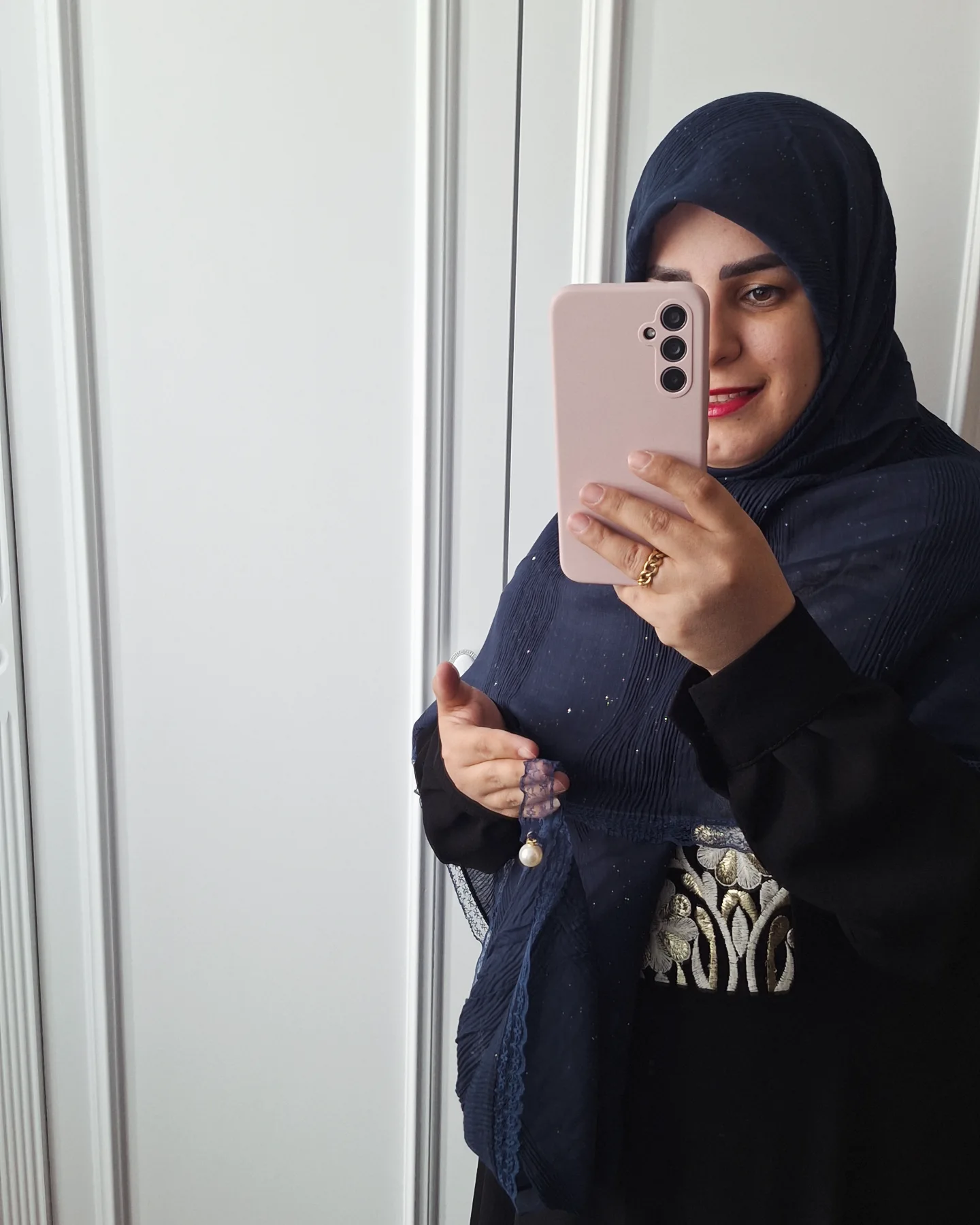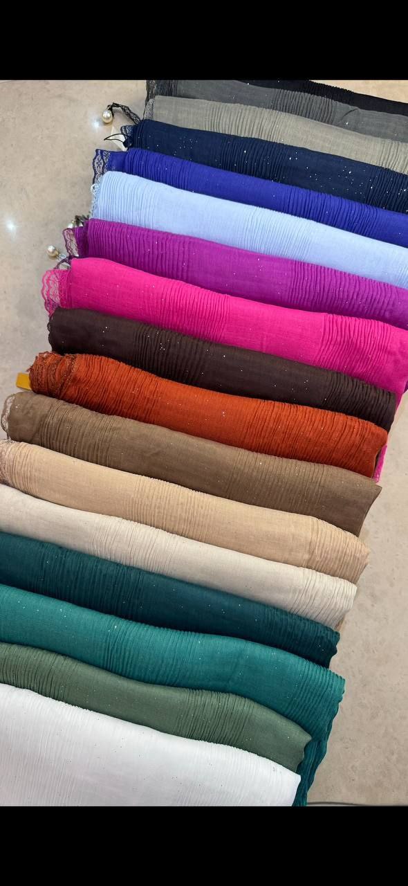 روسری نخ پلیسه دور دانتل مرواریدی HH